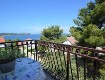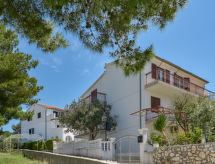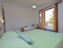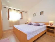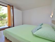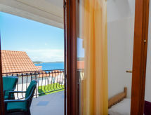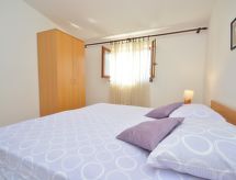 4 -sobni apartman 100 m2 na 2. katu, prema jugu. Dnevni boravak/blagovaona 25 m2 s TV-om sa sat. prijemnikom (plosnatim TV ekranom). Izlaz na terasu. Predsoblje s klima uređajem. 1 soba s 1 krevetom (90 cm, dužina 190 cm), 1 franc. krevetom (160 cm, dužina 200 cm). Izlaz na terasu. 1 soba s 2 kreveta (90 cm, dužina 200 cm). 1 soba s 1 krevetom (90 cm, dužina 190 cm), 1 bračnim krevetom (2 x 90 cm, dužina 190 cm). Izlaz na terasu. Otvorena kuhinja (4 ploče za kuhanje, pećnica, kuhalo za vodu, mikrovalna pećnica, zamrzivač, el. aparat za kavu). Kada/WC, tuš/WC. Terasa 12 m2, terasa 6 m2. Garnitura za sjedenje. Pogled na more. Na raspolaganju: perilica za rublje, glačalo, sušilo za kosu. Internet (wireless LAN [WLAN], besplatan). 1 kućni ljubimac / pas dozvoljen.- Značajke smještaja