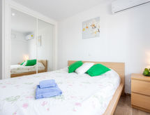 2 -sobni apartman 40 m2. Svijetlo, potpuno renoviran godine 2020, moderno i udobno uređen: dnevni boravak/blagovaona s 1 kaučem za 1 osobu, stolom za blagovanje, TV-om sa sat. prijemnikom, digitalnim TV, klima uređajem i grijanjem na topli zrak. Izlaz na balkon, prema jugu. 1 soba s 1 franc. krevetom (160 cm, dužina 190 cm), klima uređajem i grijanjem na topli zrak. Izlaz na balkon, prema jugu. Otvorena kuhinja (pećnica, perilica za suđe, 3 Indukcione ploče, mikrovalna pećnica, zamrzivač, el. aparat za kavu). Tuš, odv. WC. Terasa 8 m2, prema jugu. Garnitura za sjedenje, mjesto za sjedenje. Panoramski pogled na more. Na raspolaganju: perilica za rublje, glačalo, dječji krevetić, sušilo za kosu. Internet (wireless LAN [WLAN], besplatan). Dodatna informacija: TV samo FR, DE. HUTG001895- Značajke smještaja