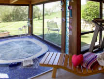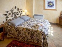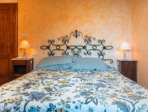 "Roseto", 5 -sobna kuća 560 m2 na 2 etaže. Rustikalno i ukusno uređena: dnevni boravak s otvorenim kaminom, TV-om, plosnatim TV ekranom, CD-om i muzičkom linijom. 1 bračna soba s tušem/WC-om. 1 bračna soba s tušem/bidetom/WC-om i TV-om (plosnatim TV ekranom). Otvorena kuhinja (pećnica, perilica za suđe, 5 plamena za kuhanje, toster, kuhalo za vodu, mikrovalna pećnica, zamrzivač, el. aparat za kavu) s stolom za blagovanje, otvorenim kaminom. Izlaz u vrt, na lođu. Odv. WC. Gornji kat: 1 bračna soba s otvorenim kaminom i tušem/WC-om. 2 bračne sobe, svaka soba s tušem/WC-om. 2. Gornji kat: (strme stepenice). Kuhinja/dn. boravak (2 ploče za kuhanje, pećnica, toster, kuhalo za vodu, zamrzivač, el. aparat za kavu) s stolom za blagovanje, 1 kaučem za 1 osobu (120 cm), TV-om, CD-om i muzičkom linijom. Grijanje na plin, klima uređaj. 2 terase (natkrite). Garnitura za sjedenje, vrtni roštilj. Na raspolaganju: perilica za rublje, glačalo, mrežice protiv komaraca. Internet (wireless LAN [WLAN], besplatan). Dodatna informacija: kuća za nepušače.- postrojenja
