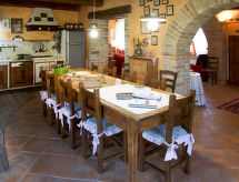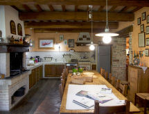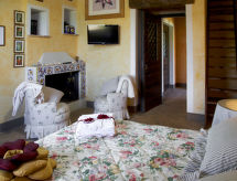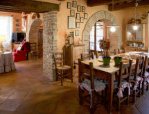 Lijepa, komforna ladanjska kuća "Roseto", zasebna, okružena drvećem, livadama i poljima. 3 kuće u turističkom naselju. 4 km od centra mjesta Collazzone, 14 km od centra mjesta Todi, 40 km od jezera, u zelenom. Za samostalno korištenje: parcela 2'000 m2 - travnjak i drveće, travnjak za sunčanje, bazen (12 x 6 m, 150 cm dubok, sezonska dostupnost: 02.May. - 26.Sep.). Vanjski tuš. U kompleksu: sauna, prostorija za fitnes (uz doplatu). Masaža (uz doplatu). Parna kupelj (uz doplatu). Hidromasažni bazen (uz doplatu). Najam bicikli. Kuhar moguć (uz doplatu). Parking (za 2 automobila). Supermarket 2.5 km. Poznata jezera u blizini: Lago Trasimeno 40 km. Dodatna informacija: preporučljiv vlastiti prijevoz. Prikladno za evente. Vlasnik ne prihvaća grupe mladih. Prodaja domaćih poljoprivrednih proizvoda. Objekt ref.br. 120.1,130.1 je smješten na istoj parceli.Interior