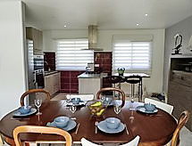 5 -sobna kuća 110 m2 na 2 etaže. Dnevni boravak/blagovaona s otvorenim kaminom i TV-om (plosnatim TV ekranom). Izlaz na terasu. 1 soba s 1 franc. krevetom i tušem. Otvorena kuhinja (pećnica, perilica za suđe, mikrovalna pećnica, zamrzivač, kuhinjski otok). Odv. WC. Gornji kat: 1 soba s 2 kreveta (90 cm). Prolazna soba s 2 kreveta (90 cm, dužina 190 cm). 1 soba s 2 kreveta (90 cm, dužina 190 cm). Tuš/WC. Grijanje na naftu. Terasa 30 m2. Garnitura za sjedenje, ležaljke (2). Na raspolaganju: perilica za rublje, glačalo. Internet (wireless LAN [WLAN], besplatan). Dodatna informacija: 1 kućni ljubimac / pas dozvoljen. Protupožarni alarm.- postrojenja