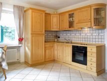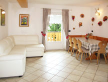 4 -sobni apartman 100 m2 na 2. katu. Lijepo i udobno uređen: dnevno-spavaća soba s 1 kaučem za 2 osobe, kutom za blagovanje i TV-om. Izlaz na balkon. 1 soba s 1 franc. krevetom (160 cm), TV-om. Izlaz na balkon. 1 soba s 2 kreveta (80 cm). 1 soba s 1 krevetom (80 cm), 1 franc. krevetom (160 cm), TV-om. Otvorena kuhinja (pećnica, perilica za suđe, 4 staklokeramičke ploče za kuhanje, kuhalo za vodu, zamrzivač). 2 x tuš/WC. Grijanje na plin. 2 balkona. Balkonski namještaj. Na raspolaganju: perilica za rublje, visoka dječja stolica, dječji krevetić. Internet (wireless LAN [WLAN]). Parking (2 automobila) uz kuću. Dodatna informacija: apartman za nepušače. Najviše 1 kućni ljubimac / pas dozvoljen.- postrojenja