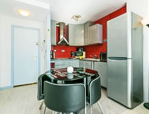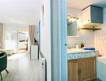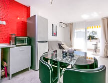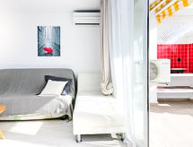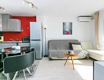 Lijepo, komforno turističko naselje "Royal Marine". U četvrti Santa Margarita 3.5 km od centra mjesta Roses, mirno, sunčano mjesto, zona s malo prometa, 1.5 km od mora. Za zajedničko korištenje: lijepi, njegovani vrt - travnjak i drveće, bazen (10 x 5 m, 100- 170 cm dubok, sezonska dostupnost: 01.Jun. - 30.Sep.). Nepravilan oblik bazena. Bazen za djecu, terasa. Unutrašnje dvorište sa zelenilom. U kompleksu: recepcija, dizalo. Supermarket 300 m, trgovački centar 1.5 km, restoran 500 m, bar 300 m, autobusna postaja 1 km, pješčana plaža "Santa Margarita" 1.5 km, uvala za kupanje 5 km. Sportska lučica 3 km, tenis 2 km, minigolf 1.5 km. U blizini: Parque Acuático Aquabrava Roses 1.9 km, Skydive y túnel del viento Empuriabrava 6 km, Museo Dalí Figueres 19 km, Monasterio de Sant Pere de Rodes 20 km, Castillo y casino de Perelada 20 km, Cadaqués 16 km. Dodatna informacija: Mogućnost rezerviranja dodatnih smještajnih jedinica.Interior