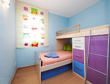 3 -sobni apartman 57 m2 na 4. katu. Svijetlo, lijepo i moderno uređen: dnevni boravak/blagovaona s 1 kaučem za 1 osobu i TV-om. Izlaz na balkon. 1 soba s 1 franc. krevetom (150 cm). 1 dječja soba s 1 x 2 kreveta na kat (90 cm, dužina 180 cm). Otvorena kuhinja (pećnica, 2 staklokeramičke ploče za kuhanje, mikrovalna pećnica, zamrzivač, el. aparat za kavu) s barom. Kada/tuš/WC. Grijanje, klima uređaj, grijanje toplim zrakom. Gornji kat: (strme stepenice). Izlaz na terasu. Balkon 9 m2, velika terasa 60 m2. Garnitura za sjedenje, ležaljke. Pogled na bazen, vrt i krajolik. Na raspolaganju: perilica za rublje. HUTG049162- Aktivnosti u blizini