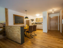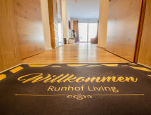 "Runhof Living", 2 -sobni apartman 70 m2, u povišenom prizemlju. Prostrano i svijetlo, vrlo komforno i stilski uređen: predsoblje. 1 bračna soba s TV-om. Izlaz na terasu. Dnevni boravak/blagovaona s 1 kaučem za 2 osobe i TV-om. Izlaz na terasu. Kuhinja (pećnica, perilica za suđe, 4 Indukcione ploče, toster, kuhalo za vodu, zamrzivač, el. aparat za kavu) s stolom za blagovanje. Kada/tuš, odv. WC. Grijanje. Parketni pod. Velika terasa, prema sjeveru i prema zapadu. Garnitura za sjedenje, ležaljke (2). Prekrasan panoramski pogled na planine. Na raspolaganju: perilica za rublje, visoka dječja stolica, dječji krevetić, sušilo za kosu. Internet (wireless LAN [WLAN]). Garaža. Dodatna informacija: apartman za nepušače. 1 kućni ljubimac / pas dozvoljen. Protupožarni alarm.- Značajke smještaja