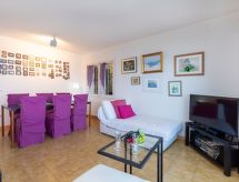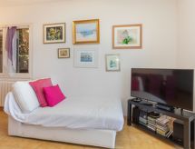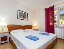 "Bella Vista", 4 -sobni apartman na 1. katu. Svrsishodno i udobno uređen: dnevni boravak/blagovaona s TV-om sa sat. prijemnikom i muzičkom linijom. Izlaz na terasu. 1 soba s 2 kreveta (90 cm, dužina 190 cm). 1 soba s 1 franc. krevetom (140 cm, dužina 190 cm). 1 soba s 1 franc. krevetom (180 cm, dužina 190 cm), kadom/WC-om. Kuhinja (pećnica, perilica za suđe, 4 staklokeramičke ploče za kuhanje, toster, kuhalo za vodu, mikrovalna pećnica, zamrzivač, el. aparat za kavu). Kada/WC. El. grijanje. Terasa 14 m2. Garnitura za sjedenje. Vrlo lijep pogled na more i luku. Na raspolaganju: perilica za rublje, sušilica. Dodatna informacija: kuća za nepušače. HUTG-013527- postrojenja