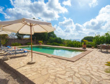Lijepa, povijesna kuća "Sa Rota (BIN110)", iz 19. stoljeća. 200 m od centra mjesta Biniamar, na rubu mjesta, 5 km od centra mjesta Inca, 31 km od centra mjesta Alcudia, povišeno mjesto, 30 km od mora. Za samostalno korištenje: parcela 2'500 m2 (ograđena), lijepi terasasti vrt - bilje i drveće, voćnjak, bazen (9 x 5 m, sezonska dostupnost: 01.Jan. - 31.Dec.) s čišćenje bazena elektrolizom soli. Vanjski tuš. Put sa stepenicama (6 stepenica) do kuće. Parking (natkriti) na parceli. Trgovina 4 km, pješčana plaža "Playa de Muro" 30 km. Dodatna informacija: preporučljiv vlastiti prijevoz.Interior
