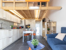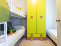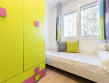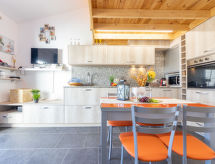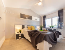 "Salvagina 15", 4 -sobna kuća u nizu. Komforno i moderno uređena: dnevni boravak/blagovaona s TV-om sa sat. prijemnikom (plosnatim TV ekranom), el. grijanjem i klima uređajem. Izlaz na terasu. 1 bračna soba s 1 krevetom (90 cm, dužina 190 cm), 1 x 2 kreveta na kat (90 cm, dužina 190 cm). Otvorena kuhinja (perilica za suđe, 1 staklokeramičke ploče za kuhanje, toster, kuhalo za vodu, mikrovalna pećnica, zamrzivač, el. aparat za kavu). Kada/WC. Klima uređaj, grijanje toplim zrakom. Gornji kat: 2 bračne sobe, svaka soba s 1 krevetom (135 cm, dužina 190 cm). Kada/tuš/WC. Garnitura za sjedenje. Na raspolaganju: perilica za rublje, glačalo, mrežice protiv komaraca. Internet (wireless LAN [WLAN], besplatan). 2 kućna ljubimca / psa dozvoljena. HUTTE002285- postrojenja