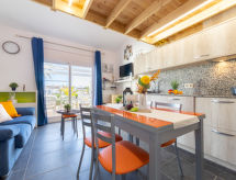 Salvagina: Lijepa, ugodna, komforna kuća u nizu "Salvagina", na 2 kata, renovirana godine 2018. 100 m od mora, 50 m od plaže. Za zajedničko korištenje: vrt - travnjak, bazen pravokutni (10 x 5 m, sezonska dostupnost: 01.May. - 01.Oct.). U kući: klimatizacija, perilica za rublje. Parking br. 1 uz kuću. Supermarket 150 m, pješčana plaža 50 m. Sportska lučica 500 m, golf teren (18 rupa) 10 km. U blizini: parque natural Delta del ebro, Port Aventura 65 km. Grupe mladih samo na upit.Interior