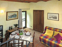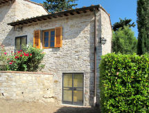 Montefioralle 3 km od mjesta Greve in Chianti: Agroturizam na vinogradarskom imanju "San Rocco", na 2 kata, iz 19. stoljeća, okružen drvećem, poljima i vinogradima. 3 apartmana u residenceu. 3 km od centra mjesta Greve in Chianti, 1 km od centra mjesta Montefioralle, izvan mjesta, 25 km od centra mjesta Firenze, sunčano mjesto, u zelenom. Za zajedničko korištenje: terasasti vrt, 4 ha (nije ograđen) - bilje i drveće, prirodni vrt, bazen (12 x 6 m, 120- 180 cm dubok, sezonska dostupnost: 02.May. - 03.Oct.). Vanjski tuš, roštilj. Bazen održava vlasnik/vrtlar. U kući: perilica za rublje (uz doplatu). Parking na parceli. Trgovina živežnim namirnicama 3 km, restoran 3 km, vanjski bazen 3 km. Golf teren (18 rupa) 18 km. Prodaja domaćih poljoprivrednih proizvoda. Vlasnik stanuje u zasebnom dijelu kuće.Interior