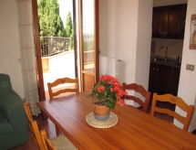 "San Vivaldo, Nr. 10", 3 -sobni apartman 55 m2 na 1. katu. Svrsishodno i rustikalno uređen: 1 bračna soba. 1 soba s 2 kreveta (80 cm). Kuhinja/dn. boravak (perilica za suđe, 4 plamena za kuhanje, toster, kuhalo za vodu, mikrovalna pećnica, el. aparat za kavu) s stolom za blagovanje, 1 kaučem za 1 osobu i TV-om sa sat. prijemnikom. Izlaz na terasu. Kada/bidet/WC. Bez grijanja. Prirodni kameni pod. Terasa. Garnitura za sjedenje, vrtni roštilj. Vrlo lijep panoramski pogled na krajolik. Na raspolaganju: visoka dječja stolica, dječji krevetić do 2 godine. Internet (wireless LAN [WLAN], besplatan). Parking (natkrit, 1 automobil) uz kuću. Dodatna informacija: apartman za nepušače. Najviše 2 kućna ljubimca / psa dozvoljena.- postrojenja