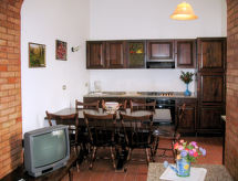 Ladanjska kuća "San Vivaldo", 400 m n.m., okružena drvećem i poljima. 16 apartmana u residenceu. U zaseoku San Vivaldo 7 km od centra mjesta Montaione, 50 km od centra mjesta Pisa, 60 km od centra mjesta Firenze, sunčano, povišeno mjesto u jednoj četvrti za stanovanje, 65 km od mora, u zelenom. Za zajedničko korištenje: parcela 920'000 m2, drveće, bazen ograđen (20 x 10 m, 150- 250 cm dubok, sezonska dostupnost: 15.May. - 01.Oct. bazen je otvoren u vremenu: 09:00-20:00) s čišćenje bazena elektrolizom soli. Tuš/WC uz bazen, tenis, stolni tenis, terasa, vrtna garnitura za sjedenje, roštilj, dječje igralište. Bazen održava vlasnik/vrtlar. U kompleksu: recepcija, wireless LAN [WLAN], perilica za rublje (za zajedničko korištenje). Parking (natkriti) na parceli. Trgovina živežnim namirnicama, restoran, bar, pekara 10 m, pješčana plaža "Cecina Mare" 66 km. Golf teren (18 rupa) 4 km. U blizini: San Gimignano 17 km, Certaldo 19 km, Volterra 30 km. Dodatna informacija: preporučljiv vlastiti prijevoz. Oprema za bebe (uklj.). Prodaja domaćih poljoprivrednih proizvoda. Sve kuće/apartmani su individualno opremljeni.Interior
