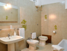 "San Vivaldo, Nr. 2", 3 -sobni apartman 65 m2, u prizemlju. Svrsishodno i rustikalno uređen: dnevno-spavaća soba s 1 kaučem za 2 osobe, otvorenim kaminom i TV-om sa sat. prijemnikom. 1 soba s 1 bračnim krevetom. 1 soba s 2 kreveta. Otvorena kuhinja (pećnica, perilica za suđe, 4 plamena za kuhanje, toster, kuhalo za vodu, el. aparat za kavu) s stolom za blagovanje. Izlaz na terasu. Kada/bidet/WC. Bez grijanja. Na raspolaganju: visoka dječja stolica, dječji krevetić. Dodatna informacija: apartman za nepušače. Najviše 2 kućna ljubimca / psa dozvoljena.- postrojenja