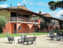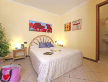"Le Villette", 3 -sobna polovica dvojne kuće 60 m2 na 2 etaže. Komforno uređena: donji kat: 1 bračna soba s tušem/WC-om. Izlaz u vrt. Gornji kat: dnevno-spavaća soba s 1 kaučem za 2 osobe, stolom za blagovanje, TV-om sa sat. prijemnikom i klima uređajem. Izlaz na balkon. 1 bračna soba. Otvorena kuhinja (4 ploče za kuhanje, kuhalo za vodu, mikrovalna pećnica, el. aparat za kavu). Tuš/bidet/WC. Bez grijanja. Veliki balkon, vrtna terasa. Balkonski namještaj, ležaljke (2). Na raspolaganju: sef, dječji krevetić do 2 godine (uz doplatu). Parking (1 automobil). Dodatna informacija: nije prikladno za malu djecu. Jedna bračna soba se nalazi izvan apartmana. Katovi nisu interno povezani. 017102-CIM-00178- postrojenja