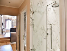 2 -sobni apartman 60 m2 na 2 etaže na 3. katu. Komforno i stilski uređen: predsoblje. Gornji kat: dnevni boravak/blagovaona s 1 kaučem za 2 osobe, TV-om sa sat. prijemnikom i klima uređajem. Izlaz na terasu. 1 bračna soba s klima uređajem. Kuhinja (pećnica, perilica za suđe, 4 Indukcione ploče, mikrovalna pećnica, zamrzivač). Tuš/bidet/WC. Terasa 5 m2. Garnitura za sjedenje. Panoramski pogled na na grad. Na raspolaganju: sef. Internet (wireless LAN [WLAN], besplatan).- postrojenja