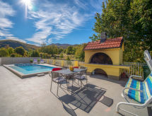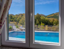 3 -sobna kuća 93 m2. Dnevni boravak/blagovaona s 2 kauča za 1 osobu (80 cm, dužina 190 cm), TV-om i međunarodnim TV kanalima (plosnatim TV ekranom), peći na drva. 1 soba s 2 kreveta (90 cm, dužina 200 cm). 1 soba s 1 franc. krevetom (140 cm, dužina 190 cm). Otvorena kuhinja (1 ploča za kuhanje, pećnica, 3 plamena za kuhanje, kuhalo za vodu, zamrzivač, el. aparat za kavu). Tuš/WC. Grijanje na drva (uz doplatu). Ležaljke. Na raspolaganju: drvo (uz doplatu). Internet (wireless LAN [WLAN], besplatan). 1 kućni ljubimac / pas dozvoljen. U kući nema pragova i stepenica. Širina ulaznih vrata 100 cm. Širina unutarnjih vrata 82 cm.- postrojenja