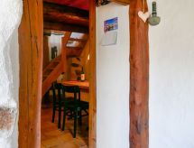 "Rustico Scateto 66", 2 -sobna kuća 25 m2 na 2 etaže. Objekt pogodan za 2 odraslih. Komforno i udobno uređena: kuhinja/dn. boravak (pećnica, 4 staklokeramičke ploče za kuhanje, kuhalo za vodu, zamrzivač, el. aparat za kavu, Doze za mašinu za kavu (Nespresso) uz doplatu) s stolom za blagovanje, peći na drva. Izlaz na terasu. Tuš/WC. El. grijanje, grijanje na drva. Gornji kat: (strme stepenice) 1 bračna soba s 1 bračnim krevetom (180 cm, dužina 200 cm). Izlaz na terasu. 2 terase (djelomično natkrite). Ležaljke (2). Dodatna informacija: kuća za nepušače. Najviše 2 kućna ljubimca / psa dozvoljena. NL-00003074- postrojenja