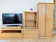 3 -sobni apartman 65 m2 na 2. katu. Komforno i ukusno uređen: dnevno-spavaća soba s kosim stropom s 1 krevetom na izvlačenje, kutom za blagovanje i TV-om sa sat. prijemnikom. Izlaz na balkon. 1 bračna soba s kosim stropom. Izlaz na balkon. 1 bračna soba. Kuhinjska niša (4 ploče za kuhanje, pećnica, perilica za suđe, toster, kuhalo za vodu, mikrovalna pećnica, el. aparat za kavu). Tuš/WC. Veliki balkon, prema jugu. Garnitura za sjedenje. Prekrasan pogled na planine i krajolik. Na raspolaganju: Internet (wireless LAN [WLAN], besplatan). Dodatna informacija: protupožarni alarm.- postrojenja