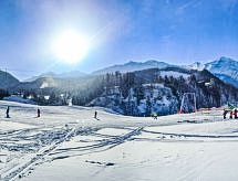 4 -sobni apartman 130 m2, u potkrovlju. Djelomično spušten strop, udobno uređen: predsoblje. 1 bračna soba s tušem/WC-om. 2 sobe, svaka soba s 1 kaučem za 1 osobu, 1 bračnim krevetom i umivaonikom. Prolazna soba s 1 kaučem za 2 osobe i TV-om sa sat. prijemnikom (plosnatim TV ekranom). Izlaz na balkon. Kuhinja (4 ploče za kuhanje, pećnica, perilica za suđe, mikrovalna pećnica, el. aparat za kavu, Doze za mašinu za kavu (Bohnen)) s kutom za blagovanje. Tuš, tuš/WC, odv. WC. Balkon 20 m2. Vrtni roštilj. Prekrasan panoramski pogled na krajolik. Na raspolaganju: visoka dječja stolica, dječji krevetić, sušilo za kosu. Internet (wireless LAN [WLAN], besplatan). Prikladno za obitelji. 1 kućni ljubimac / pas dozvoljen.- postrojenja