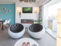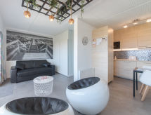 Turističko naselje "Mimosa", prikladno za djecu na 8 kata, okruženo poljima. Na rubu mjesta, 2 km od centra mjesta De Haan, zona s malo prometa, 1 km od mora, 1 km od plaže. Za zajedničko korištenje: parcela 10 ha (ograđena). Tenis, košarka, boćalište, roštilj, dječje igralište. U kompleksu: dizalo. Parking uz kuću. Supermarket 3 km, restoran 500 m, pekara 400 m, Tramvaj "de Haan Vosseslag" 700 m, autobusna postaja "Vosseslag" 700 m. Golf teren 300 m. U blizini: Brugge 17 km, Plopsaland 50 km, Gent 65 km, Sea Life Marine Park 13 km, Hof Ter Meulen 4 km, ‘t Reigershof 5 km. Dodatna informacija: dizalo samo do 7. kata.Interior