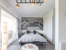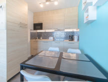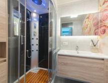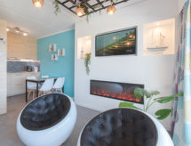 "Sea la vie", 1 -sobni studio 30 m2 na 3. katu. Potpuno renoviran, komforno i stilski uređen: dnevno-spavaća soba s 1 kaučem za 1 osobu (140 cm, dužina 200 cm), otvorenim kaminom (samo za dekoraciju), TV-om, digitalnim TV, međunarodnim TV kanalima i plosnatim TV ekranom. Izlaz na balkon. Otvorena kuhinja (perilica za suđe, 3 Indukcione ploče, toster, kuhalo za vodu, mikrovalna pećnica, el. aparat za kavu) s stolom za blagovanje. Tuš/WC, hidromasažnim tušem. El. grijanje. Mali balkon 6 m2. Balkonski namještaj. Na raspolaganju: Internet (wireless LAN [WLAN], besplatan). Dodatna informacija: kuća za nepušače. Protupožarni alarm, vatrogasni aparat.- postrojenja