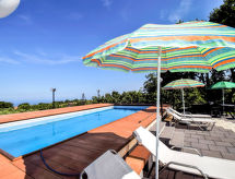 Kuća s 3 apartmana "Serena", 350 m n.m.. 3 apartmana u kući. 1 km od centra mjesta Piedimonte Etneo, 3 km od centra mjesta Fiumefreddo, mirno, sunčano mjesto na brežuljku, 10 km od mora. Za zajedničko korištenje: parcela 40'000 m2 (ograđena), vrt 800 m2 (ograđen) - bilje i cvijeće, bazen (4 x 9 m, 130 cm dubok, sezonska dostupnost: 15.Apr. - 15.Oct.). Stolni tenis, mjesto za sjedenje (20 m2), vrtna garnitura za sjedenje, roštilj. U kući: wireless LAN [WLAN], perilica za rublje (za zajedničko korištenje). 3 km dugački strmi prilaz autom do kuće. Parking na parceli. Trgovina živežnim namirnicama 2 km, supermarket 2 km, restoran 1 km, autobusna postaja 1 km, pješčana plaža "Giardini Naxos" 17 km, plaža s oblucima 8 km, stjenovita plaža "Torre Archirafi" 15 km. Škola skijanja 25 km. U blizini: Punto Escursioni sull'Etna 5 km, Giardini Naxos 16 km, Taormina 25 km, Acireale 32 km, Catania 44 km, Aeroporto di Catania 52 km. Dodatna informacija: preporučljiv vlastiti prijevoz, nema dizala. Vlasnik živi u istoj kući. Vlasnik ima psa. Objekt ref.br. IT9627.151.1 je smješten na istoj parceli.Interior