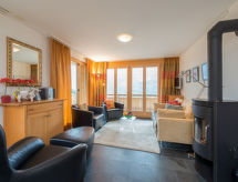 "Apt. DW", 3 -sobni apartman 65 m2 na 1. katu. Svijetlo, moderno i ukusno uređen: dnevni boravak/blagovaona s švedskom peći, stolom za blagovanje, TV-om sa sat. prijemnikom, kabelskom TV, međunarodnim TV kanalima, radiom, CD-om i DVD-om. 2 sobe, svaka soba s 1 bračnim krevetom (2 x 90 cm, dužina 200 cm). Otvorena kuhinja (pećnica, perilica za suđe, 4 Indukcione ploče, toster, kuhalo za vodu, el. aparat za kavu, Doze za mašinu za kavu (Nespresso) uz doplatu, set za fondue (sir)). Tuš/WC, kada/tuš/WC. Balkon 30 m2, prema jugu i prema zapadu. Balkonski namještaj. Vrlo lijep panoramski pogled na planine. Na raspolaganju: glačalo, sušilo za kosu, drvo (uz doplatu). Internet (wireless LAN [WLAN], besplatan). Blu-ray player. Dodatna informacija: apartman za nepušače.- postrojenja