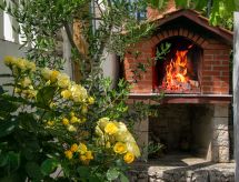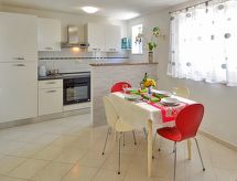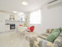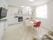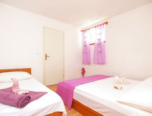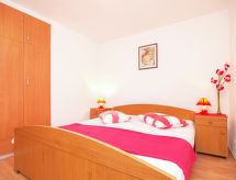 3 -sobni apartman 46 m2, u prizemlju. Dnevni boravak/blagovaona 16 m2 s TV-om sa sat. prijemnikom i klima uređajem. 1 soba s 1 bračnim krevetom (2 x 90 cm, dužina 200 cm). 1 soba s 1 krevetom (80 cm, dužina 190 cm), 1 franc. krevetom (160 cm, dužina 200 cm). Otvorena kuhinja (4 ploče za kuhanje, pećnica, mikrovalna pećnica). Tuš/bidet/WC. Velika terasa 25 m2. Na raspolaganju: perilica za rublje, glačalo, sušilo za kosu. Internet (wireless LAN [WLAN], besplatan). Parking (ograđen). Vanjski tuš.- postrojenja