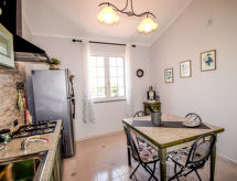 3 -sobni apartman 100 m2 na 1. katu, prema jugu. Komforno i ukusno uređen: dnevni boravak s 1 kaučem za 1 osobu i TV-om sa sat. prijemnikom (plosnatim TV ekranom). 1 bračna soba s TV-om (plosnatim TV ekranom), klima uređajem i grijanjem na topli zrak. Izlaz na terasu. 1 bračna soba s klima uređajem i grijanjem na topli zrak. Kuhinja (4 ploče za kuhanje, pećnica, mikrovalna pećnica, zamrzivač, el. aparat za kavu) s stolom za blagovanje, klima uređajem i grijanjem na topli zrak. Kada/bidet/WC. Grijanje, klima uređaj, grijanje toplim zrakom (uz doplatu), bojlerom (50 litara). Grijanje samo u pojedinim prostorijama. Terasa 20 m2 (djelomično natkrita). Garnitura za sjedenje. Pogled na bazen i vrt. Na raspolaganju: perilica za rublje, glačalo, visoka dječja stolica, dječji krevetić do 2 godine (uz doplatu), sušilo za kosu. Internet (wireless LAN [WLAN], besplatan). Parking (1 automobil). Bazen naveden u opisu je za privatno korištenje.- postrojenja