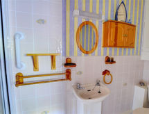 2 -sobna obiteljska kuća. Prostrano i svijetlo, komforno i ukusno uređena: otvoreni dnevni boravak s TV-om, plosnatim TV ekranom i DVD-om. 1 bračna soba s 1 bračnim krevetom i tušem/WC-om. Otvorena kuhinja (4 ploče za kuhanje, pećnica, mikrovalna pećnica, zamrzivač) s stolom za blagovanje. Grijanje. Garnitura za sjedenje, vrtni roštilj. Dodatna informacija: kuća za nepušače.- postrojenja