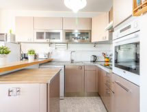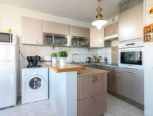 3 -sobni apartman 45 m2. Svijetlo, svrsishodno i komforno uređen: dnevni boravak/blagovaona s stolom za blagovanje, TV-om sa sat. prijemnikom, digitalnim TV, klima uređajem, grijanjem na topli zrak i električnim roletnama. Izlaz na verandu. 1 soba s 1 franc. krevetom, klima uređajem i grijanjem na topli zrak. 1 soba s 2 kreveta, klima uređajem i grijanjem na topli zrak. Otvorena kuhinja (pećnica, perilica za suđe, 3 staklokeramičke ploče za kuhanje, mikrovalna pećnica, zamrzivač, el. aparat za kavu) s barom. Kada/WC. Mali balkon 7 m2. Balkonski namještaj. Vrlo lijep pogled na kanal i na grad. Na raspolaganju: perilica za rublje. Parking (ograđen, 1 automobil). Dodatna informacija: kuća za nepušače. 1 kućni ljubimac / pas dozvoljen. TV samo FR, ES. Nema dizala. HUTG042660- postrojenja