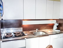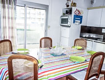 Residence "Soleil Levant 1 et 2", na 8 kata. U četvrti la Grande Plage, 50 m od mora, 50 m od plaže, direktan pristup na plažu. U kompleksu: dizalo. Parking. Trgovina, trgovina živežnim namirnicama 300 m, supermarket 5 km, trgovački centar, restoran, bar, pekara, cafe 300 m, autobusna postaja "lydia" 500 m, željeznička postaja "La Franqui" 20 km, ronilački centar 5 km, vanjski bazen 7 km, nudistička plaža 10 km. Sportska lučica 4 km, škola jedrenja 3 km, tenis 3 km, minigolf 5 km, biciklistička staza 6 km. U blizini: Aqualand Port Leucate 5 km, Réserve Africaine de Sigean 41 km, Fort de Salses 20 km, Narbonne 55 km, Perpignan 25 km, Barcelone 215 km. Poznata jezera u blizini: Etang de Leucate ou Salses 7 km, Lac de Villeneuve de La Raho 28 km. Pješačke staze: Sentier du guetteur 8 km, Station meteorologique de Opoul Perillos 25 km, Sentier du littoral Collioure 40 km. Dodatna informacija: noćni klub/diskoteka u blizini 200 m od kuće. U istoj kući iznajmljuju se dodatni apartmani.Interior
