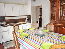 3 -sobni apartman 96 m2, u prizemlju. Dnevni boravak/blagovaona s plosnatim TV ekranom, videom, DVD-om i ventilatorom. Izlaz na terasu. 1 soba s 1 franc. krevetom (1 x 140 cm). 1 soba s 1 x 2 kreveta na kat (90 cm), 1 krevetom na izvlačenje (2 osobe). Kuhinja (4 ploče za kuhanje, pećnica, perilica za suđe, mikrovalna pećnica, zamrzivač, el. aparat za kavu) s stolom za blagovanje. Izlaz na terasu. Kada, tuš/WC, odv. WC. El. grijanje. Terasa 10 m2. Garnitura za sjedenje, vrtni roštilj, ležaljke. Pogled na more. Na raspolaganju: perilica za rublje. Internet (wireless LAN [WLAN], uz doplatu). Parking. Dodatna informacija: protupožarni alarm.- Značajke smještaja