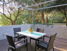 "Three-room Classic", 3 -sobni apartman 60 m2. Jednostavno uređen: dnevni boravak s 1 kaučem za 2 osobe, stolom za blagovanje i TV-om. Izlaz na terasu. 1 soba s 1 franc. krevetom (160 cm, dužina 190 cm). 1 soba s 2 kreveta. Otvorena kuhinja (2 ploče za kuhanje, pećnica, mikrovalna pećnica). Kada/WC ili tuš/WC. Grijanje, klima uređaj. Balkon ili terasa 10 m2. Garnitura za sjedenje. Na raspolaganju: sušilo za kosu. Dodatna informacija: apartman za nepušače. Vlastiti ulaz.- Značajke smještaja