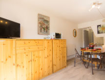 1 -sobni studio 22 m2 na 3. katu, prema jugu. Svrsishodno i lijepo uređen: dnevni boravak/blagovaona s 1 kaučem za 2 osobe (140 cm, dužina 190 cm), 1 x 2 kreveta na kat (90 cm, dužina 190 cm), TV-om (plosnatim TV ekranom). Izlaz na balkon, prema jugu. Kuhinjska niša (2 ploče za kuhanje, pećnica, toster, kuhalo za vodu, mikrovalna pećnica, el. aparat za kavu). Kada/WC. El. grijanje. Parketni pod. Balkon 4 m2, prema jugu. Balkonski namještaj. Pogled na skijašku stazu. Na raspolaganju: perilica za rublje, glačalo, sušilo za kosu. Dodatna informacija: apartman za nepušače. Najviše 1 kućni ljubimac / pas dozvoljen. Protupožarni alarm.- postrojenja