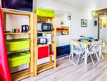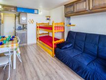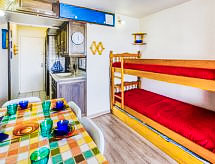 1 -sobni studio 22 m2 na 7. katu, prema sjeveru. Jednostavno i lijepo uređen: dnevni boravak/blagovaona s 1 kaučem za 2 osobe (130 cm, dužina 190 cm), 1 x 2 kreveta na kat (90 cm, dužina 190 cm), TV-om (plosnatim TV ekranom), električnim roletnama. Izlaz na balkon, prema sjeveru. Kuhinjska niša u predsoblju (2 ploče za kuhanje, mini pećnica, toster, kuhalo za vodu, mikrovalna pećnica, el. aparat za kavu). Kada/WC. El. grijanje. Parketni pod. Balkon 4 m2, prema sjeveru. Balkonski namještaj. Pogled na planine i dolinu. Na raspolaganju: glačalo, sušilo za kosu. Dodatna informacija: apartman za nepušače. Najviše 1 kućni ljubimac / pas dozvoljen. Protupožarni alarm. Ponuda od strane fizičke osobe u skladu s člankom 155, IV, CGI.- postrojenja