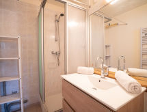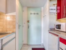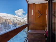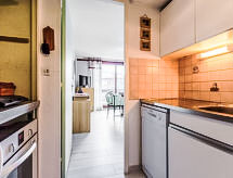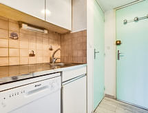 2 -sobni apartman 32 m2 na 8. katu, prema sjeverozapadu. Svrsishodno i lijepo uređen: dnevni boravak/blagovaona s 1 kaučem za 2 osobe (140 cm, dužina 190 cm), TV-om (plosnatim TV ekranom), električnim roletnama. Izlaz na balkon, prema zapadu. 1 soba s 1 x 1 kreveta na kat (90 cm, dužina 200 cm), 1 bračnim krevetom (160 cm, dužina 200 cm), električnim roletnama. Izlaz na balkon, prema sjeveru. Kuhinjska niša u predsoblju (2 ploče za kuhanje, pećnica, perilica za suđe, toster, kuhalo za vodu, mikrovalna pećnica, el. aparat za kavu). Tuš, odv. WC. El. grijanje. Parketni pod. Balkon 4 m2, balkon 3 m2. Vrlo lijep pogled na planine, dolinu i krajolik. Na raspolaganju: glačalo, sušilo za kosu. Dodatna informacija: apartman za nepušače. Protupožarni alarm. Ponuda od strane fizičke osobe u skladu s člankom 155, IV, CGI.- postrojenja