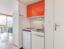 3 -sobni apartman 46 m2 na 16. katu, prema jugoistoku. Svrsishodno i lijepo uređen: dnevni boravak/blagovaona s 1 kaučem za 2 osobe (120 cm, dužina 190 cm), TV-om (plosnatim TV ekranom). Izlaz na balkon, prema istoku. 1 soba s 1 franc. krevetom (140 cm, dužina 200 cm), umivaonikom i odv. WC-om. Izlaz na balkon, prema istoku. 1 soba s 2 kreveta (90 cm, dužina 190 cm). Izlaz na balkon, prema jugu. Otvorena kuhinja (2 ploče za kuhanje, pećnica, perilica za suđe, toster, mikrovalna pećnica, zamrzivač, el. aparat za kavu, Doze za mašinu za kavu (SENSEO) uz doplatu). Kada, odv. WC. El. grijanje. Parketni pod. 2 balkona 4 m2, prema istoku i prema jugu balkon 3 m2, prema istoku. Balkonski namještaj, ležaljke. Lijep pogled na planine. Na raspolaganju: perilica za rublje, glačalo, sušilo za kosu. Dodatna informacija: apartman za nepušače. Protupožarni alarm.- postrojenja