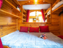 1 -sobni studio 17 m2 na 4. katu, prema jugu. Jednostavno i svrsishodno uređen: dnevno-spavaća soba s 1 krevetom (120 cm, dužina 190 cm), TV-om (plosnatim TV ekranom). Predsoblje s 1 krevetom (80 cm, dužina 190 cm). Kuhinjska niša (mini pećnica, perilica za suđe, 2 staklokeramičke ploče za kuhanje, toster, mikrovalna pećnica, el. aparat za kavu, raclette roštilj). Kada/WC. El. grijanje. Pogled na planine i skijašku stazu. Na raspolaganju: sušilo za kosu. Dodatna informacija: apartman za nepušače. 1 mali kućni ljubimac / pas dozvoljen. Protupožarni alarm.- postrojenja