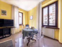 2 -sobni apartman 50 m2 na 2. katu. Prostrano i svijetlo, svrsishodno i udobno uređen: dnevno-spavaća soba s 1 kaučem za 2 osobe, stolom za blagovanje, digitalnim TV i plosnatim TV ekranom. 1 bračna soba. Mala kuhinjska niša (Plinski štednjak, 4 plamena za kuhanje, kuhalo za vodu, mikrovalna pećnica). Tuš/bidet/WC. Grijanje na plin. Lijep pogled na Duomo. Dodatna informacija: apartman za nepušače. Najviše 1 kućni ljubimac / pas dozvoljen. Na licu mjesta nema naplate dodatnih troškova. Posteljina, ručnici, završno čišćenje i troškovi energije su uključeni u cijenu.- postrojenja