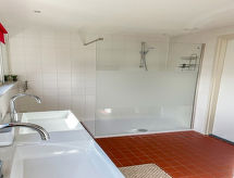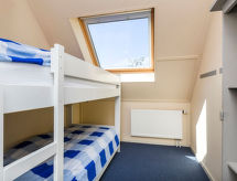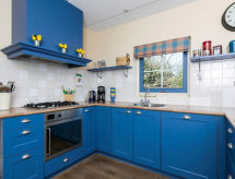 "Stavoren (STV115)", 5 -sobna kuća 150 m2 na 3 etaže, prema jugozapadu. Svrsishodno uređena: predsoblje. Dnevni boravak, na 2 nivoa s stolom za blagovanje, digitalnim TV, DVD-om i peći na plin. Izlaz na terasu. Otvorena kuhinja (pećnica, perilica za suđe, 5 plamena za kuhanje, toster, kuhalo za vodu, mikrovalna pećnica, el. aparat za kavu). Odv. WC. Donji kat: tuš/WC. Gornji kat: 1 soba s 2 kreveta. 1 soba s 2 kreveta i umivaonikom. 1 mala soba s 1 x 2 kreveta na kat. Kada/tuš/WC. Grijanje na plin. Potkrovlje 1 soba s kosim stropom s 3 kreveta, 1 krevetom na izvlačenje i umivaonikom. Drveni pod, tapison. Na raspolaganju: perilica za rublje, sušilica, visoka dječja stolica, dječji krevetić. Internet (wireless LAN [WLAN], besplatan). Dodatna informacija: apartman za nepušače. Protupožarni alarm.- postrojenja