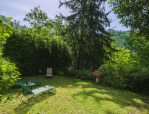 3 -sobna kuća 70 m2 na 3 etaže. Rustikalno i udobno uređena: kuhinja (pećnica, perilica za suđe, 4 plamena za kuhanje, toster, kuhalo za vodu, el. aparat za kavu) s otvorenim kaminom. Izlaz na terasu. Donji kat: (vanjske stepenice) velika soba za igru s odv. WC-om. Izlaz u vrt. Gornji kat: 1 bračna soba. 2. Gornji kat: 1 bračna soba s sjedećom kadom/WC-om. Mali dnevni boravak s TV-om i plosnatim TV ekranom. Tuš/bidet/WC. Bez grijanja. Garnitura za sjedenje, vrtni roštilj (prijenosni), ležaljke (2), ostava. Pogled na planine. Na raspolaganju: perilica za rublje, glačalo, visoka dječja stolica, dječji krevetić do 2 godine, sušilo za kosu. Internet (wireless LAN [WLAN]). Dodatna informacija: kuća za nepušače. 1 kućni ljubimac / pas dozvoljen. Posteljina, ručnici, završno čišćenje i troškovi energije su uključeni u cijenu.- postrojenja