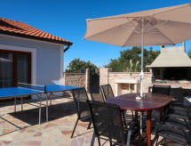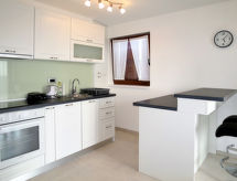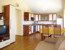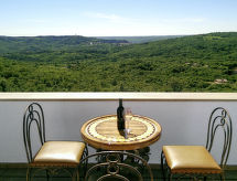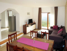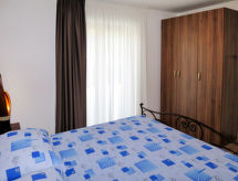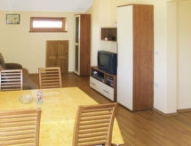 "Stella (RAC405)", 6 -sobna polovica dvojne kuće 145 m2 na 2 etaže. Dnevni boravak/blagovaona s TV-om sa sat. prijemnikom i klima uređajem. Izlaz na balkon. 2 sobe, svaka soba s 1 franc. krevetom (160 cm), tušem/WC-om. 1 soba s 1 franc. krevetom (160 cm), tušem/WC-om. Izlaz na balkon. Otvorena kuhinja (pećnica, perilica za suđe, 4 staklokeramičke ploče za kuhanje, el. aparat za kavu). Gornji kat: s kosim stropom dnevni boravak/blagovaona s TV-om sa sat. prijemnikom. 1 soba s kosim stropom s 1 franc. krevetom (160 cm). Izlaz na terasu. Otvorena kuhinja (4 ploče za kuhanje, pećnica, zamrzivač, el. aparat za kavu). Kada/WC. 2 balkona. Balkonski namještaj, ležaljke. Lijep panoramski pogled na krajolik. Na raspolaganju: dječji krevetić. Internet (wireless LAN [WLAN], besplatan). Dodatna informacija: kuća za nepušače. Prilikom rezervacije po cijeni za 6 osoba, 1. kat ostaje zatvoren.- Značajke smještaja