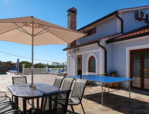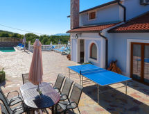 Dvojna kuća "Stella", na 2 kata. U zaseoku Ripenda 4 km od centra mjesta Rabac, 4.7 km od mora. Za samostalno korištenje: parcela 500 m2, bilje, bazen (28 m2, 135 cm dubok, sezonska dostupnost: 16.May. - 02.Oct.). Vanjski tuš, stolni tenis, terasa (60 m2), vrtna garnitura za sjedenje, roštilj. U kući: pristup internetu, krovna terasa. 200 m dugački strmi prilaz autom do kuće. Parking (za 3 automobila). Trgovina 4 km, restoran 3 km, šljunčana plaža 4.7 km.Interior