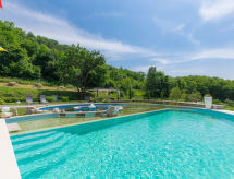 Momjan 5 km od mjesta Buje: Moderna vila "Studio Gallery Bura", na 2 kata. 400 m od centra mjesta Momjan, 17 km od centra mjesta Umag, mirno, sunčano mjesto na padini, 17 km od mora, u zelenom. Za samostalno korištenje: parcela 10'000 m2, vrt - travnjak i drveće, bazen (40 m2, 135 cm dubok, sezonska dostupnost: 15.May. - 01.Oct.) s unutarnjim stepenicama. Nepravilan oblik bazena. Vanjski tuš, terasa (35 m2), vrtna garnitura za sjedenje, roštilj. U kući: pristup internetu, perilica za rublje. Prilaz autom do kuće (250 m bijela cesta). Parking (za 4 automobila) uz kuću na parceli. Trgovina 400 m, supermarket 5 km, restoran 200 m, šljunčana plaža 17 km. Pješačke staze od kuće 100 m, biciklistička staza 150 m. Vlasnik ne prihvaća grupe mladih. Bazen za samostalno korištenje je samočisteći bio-bazen.Interior