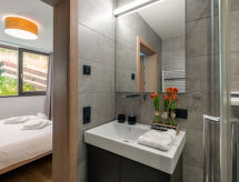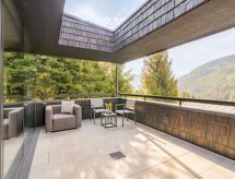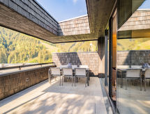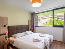 3 -sobni apartman 67 do 73 m2. Prostrano i svijetlo, luksuzno i ukusno uređen: predsoblje. 1 bračna soba s TV-om sa sat. prijemnikom i plosnatim TV ekranom. 2 bračne sobe, svaka soba s 1 x 2 kreveta na kat, TV-om sa sat. prijemnikom i plosnatim TV ekranom. Otvorena velika dnevno-spavaća soba s 1 kaučem za 2 osobe, stolom za blagovanje, TV-om sa sat. prijemnikom i plosnatim TV ekranom. Otvorena kuhinja (pećnica, perilica za suđe, 4 Indukcione ploče, toster, kuhalo za vodu, mikrovalna pećnica, zamrzivač, el. aparat za kavu). 2 x tuš/WC. Podno grijanje. Velika terasa 22 m2. Garnitura za sjedenje. Vrlo lijep panoramski pogled na planine i krajolik. Na raspolaganju: sušilo za kosu. Internet (wireless LAN [WLAN], besplatan). Parking (natkrit). Dodatna informacija: apartman za nepušače. Protupožarni alarm, vatrogasni aparat. Rezervira se tipski objekt (kuća, apartman) i moguća su manja odstupanja. 50628-001295-2020- postrojenja