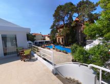 "Superior Apartment", 1 -sobni apartman 25 m2 na 1. katu. Prostrano i svijetlo, komforno i lijepo uređen: otvorena dnevno-spavaća soba s 1 kaučem za 1 osobu, 1 bračnim krevetom i TV-om (plosnatim TV ekranom). Izlaz na terasu. Mala kuhinjska niša (2 staklokeramičke ploče za kuhanje, el. aparat za kavu) s malim stolom za blagovanje. Tuš/WC. Klima uređaj. Terasa. Lijep pogled na bazen i vrt. Na raspolaganju: sef, glačalo, sušilo za kosu. Dodatna informacija: kuća za nepušače. 0310K032A0106800- Značajke smještaja