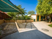 2 -sobna kuća 24 m2, prema jugu. Dnevni boravak/blagovaona s 1 kaučem za 2 osobe (150 cm, dužina 200 cm), TV-om sa sat. prijemnikom (plosnatim TV ekranom), klima uređajem. Izlaz na terasu. 1 soba s 1 franc. krevetom (150 cm, dužina 200 cm). Otvorena kuhinja (pećnica, 2 staklokeramičke ploče za kuhanje, mikrovalna pećnica, zamrzivač, el. aparat za kavu). Tuš/WC, odv. WC. Terasa 12 m2 (djelomično natkrita). Garnitura za sjedenje, električni roštilj, ležaljke. Na raspolaganju: Internet (wireless LAN [WLAN], besplatan). Parking (ograđen). Odv. WC i perilica rublja nalaze se u vanjskoj prostoriji sa zasebnim ulazom.- postrojenja