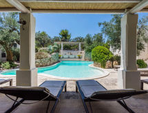 Racale 17 km od mjesta Gallipoli: Rustikalna vila "Tenuta Aphrodite", okružena drvećem i poljima. Objekat se sastoji od glavne i sporedne zgrade, 2.5 km od centra mjesta, u području Torre Suda, 3 km od mora, 3 km od plaže. Za samostalno korištenje: parcela 2'000 m2, vrt - cvijeće i drveće, bazen (18 x 7 m, 90- 200 cm dubok, 01.06.-15.10.). Vanjski tuš. Bazen održava vlasnik/vrtlar. U kući: alarmni sustav. Promjena posteljine (dodatno uz doplatu). Promjena ručnika (dodatno uz doplatu). Čišćenje apartmana moguće (uz doplatu). Parking uz kuću. Trgovina 3 km, trgovina živežnim namirnicama 3 km, supermarket 3 km, restoran 3 km, bar 3 km, stjenovita plaža "Torre Suda" 3 km. U blizini: Parco naturale di Punta Pizzo 9 km, Castro 35 km, Santa Maria di Leuca 35 km, Lecce 55 km, Porto Cesareo 45 km, Aeroporto del Salento 100 km. Dodatna informacija: preporučljiv vlastiti prijevoz. Oprema za bebe na upit.Interior