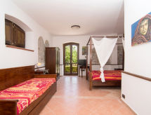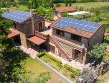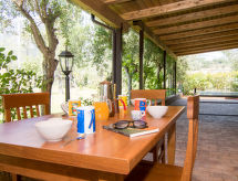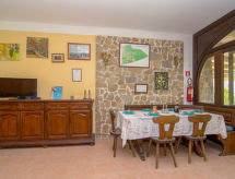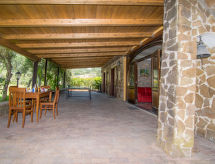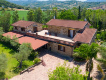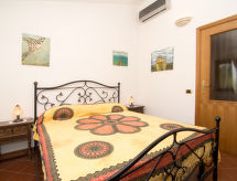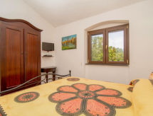 "Tenuta Valente", 5 -sobna vila 200 m2 na 2 etaže. Prostrano i svijetlo, djelomično renovirana godine 2019, komforno i lijepo uređena: 1 velika soba s 4 kreveta, tušem/bidetom/WC-om, TV-om, plosnatim TV ekranom, klima uređajem i grijanjem na topli zrak. Izlaz na mjesto za sjedenje u vrtu. Veliki dnevni boravak/blagovaona s stolom za blagovanje, kuhinjskim blokom i TV-om. Izlaz na mjesto za sjedenje u vrtu. Kuhinjska niša (4 ploče za kuhanje, pećnica, perilica za suđe, mikrovalna pećnica, zamrzivač, gril) s stolom za blagovanje. Gornji kat: (vanjske stepenice) 3 bračne sobe, svaka soba s tušem/bidetom/WC-om i TV-om (plosnatim TV ekranom), klima uređajem. Izlaz na terasu. Velika terasa 150 m2, vrtna terasa, veliki vrt. Garnitura za sjedenje, vrtni roštilj, ležaljke. Lijep pogled na vrt i krajolik. Na raspolaganju: perilica za rublje, glačalo, mrežice protiv komaraca, sušilo za kosu. Internet (wireless LAN [WLAN], besplatan). Parking. Dodatna informacija: prikladno za obitelji. Vatrogasni aparat, nema dizala.- postrojenja